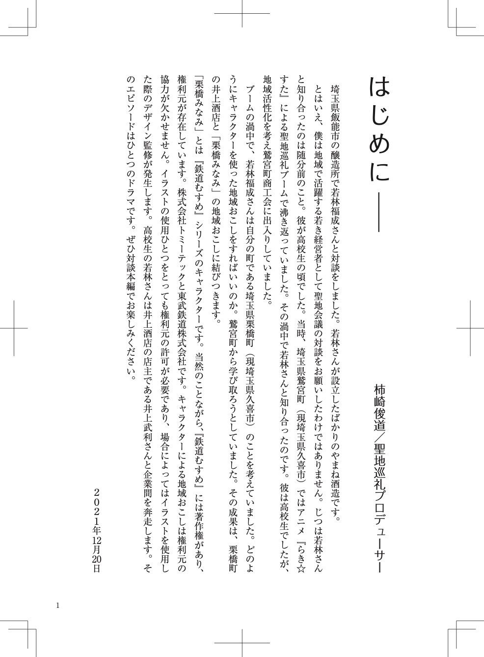 「栗橋みなみ」とは『鉄道むすめ』シリーズのキャラクターです。当然のことながら、『鉄道むすめ』には著作権があり、権利元が存在しています。株式会社トミーテックと東武鉄道株式会社です。キャラクターによる地域おこしは権利元の協力が欠かせません。画像の使用ひとつをとっても権利元の許可が必要であり、場合によっては画像を使用した際のデザイン監修が発生します。高校生の若林さんは井上酒店の店主である井上武利さんと企業間を奔走します。そのエピソードはひとつのドラマです。ぜひ対談本編でお楽しみください。